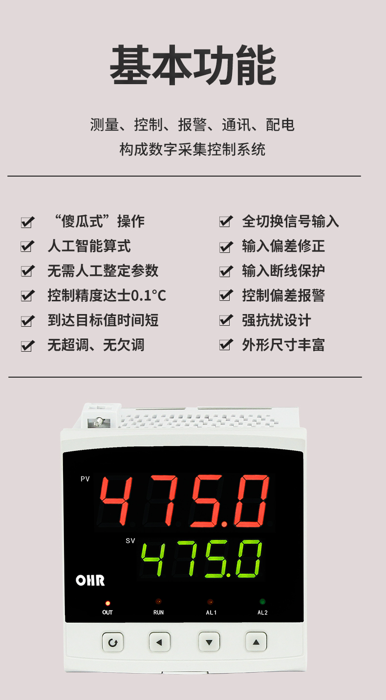 虹潤公司是專業生產溫控器的國家專精特新“小巨人”企業。生產的傻瓜式智能溫控器,具有傻瓜式操作,真正人工智能算式,無需人工整定參數,控制精度可達±0.1°C,高抗干擾等特點。產品獲得模糊PID控制儀及控制方法、人工智能調節器、智能化控制器、移相觸發控制器、閥門自動手動無擾動操作控制方法及裝置等5項國家發明專利,主持起草智能溫度儀表通用技術條件、工業過程控制系統用模擬輸入兩位或多位輸出儀表、工業過程測量和控制系統用智能調節器等3項國家標準,參與國際5G標準制定,取得傻瓜式模糊PID調節儀等3項相關軟件著作權。產品廣泛應用于電力、石化,冶金、制藥、食品等幾乎所有工業現場,實現精準控溫,保障生產安全與質量。