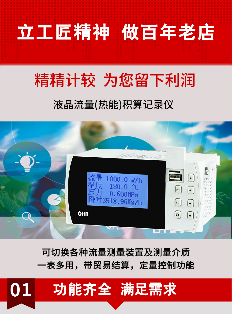 OHR-G600/G600R系列液晶流量積算控制儀/記錄儀對現場溫度、壓力、流量等各種信號進行采集、顯示、控制、遠傳、通訊、打印等處理.