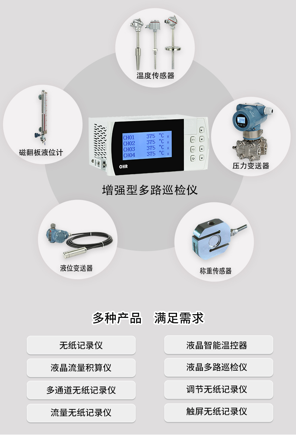 OHR-G702系列增強型液晶多回路測量顯示控制儀針對現場溫度、壓力、液位、速度等各種信號進行采集、顯示、控制、遠傳、通訊、打印等處理