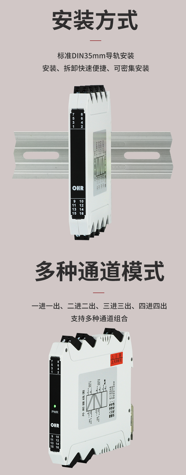 OHR-W21系列無源信號隔離器無需外供電源,由輸入回路供電,實現信號隔離??梢耘c各種工業傳感器、現場儀表配合,取回參數信號,隔離變送傳輸,滿足用戶本地監視遠程數據的需求。本產品品種分為一進一出、兩進兩出、三進三出、四進四出,且輸入、輸出磁隔離。
