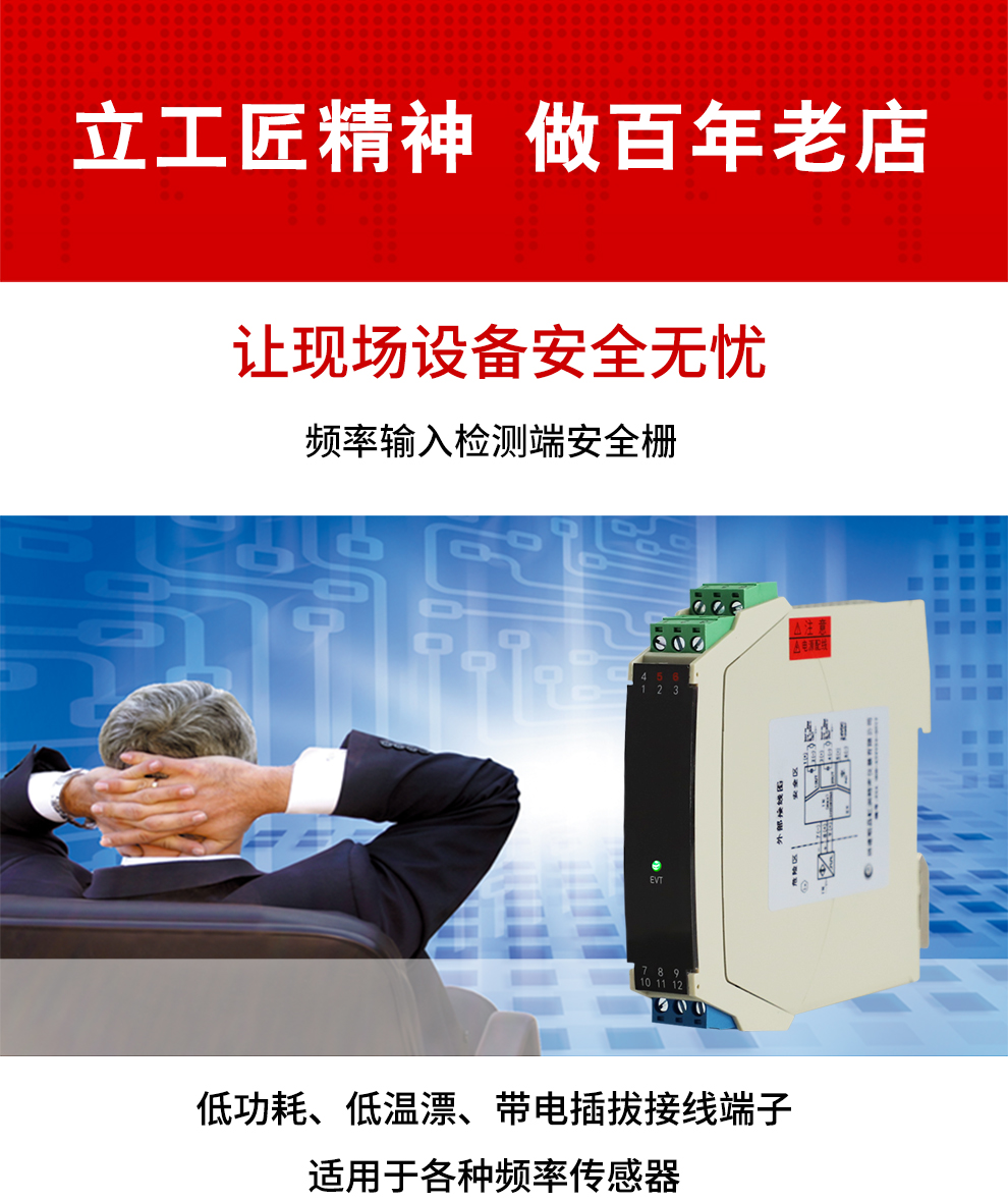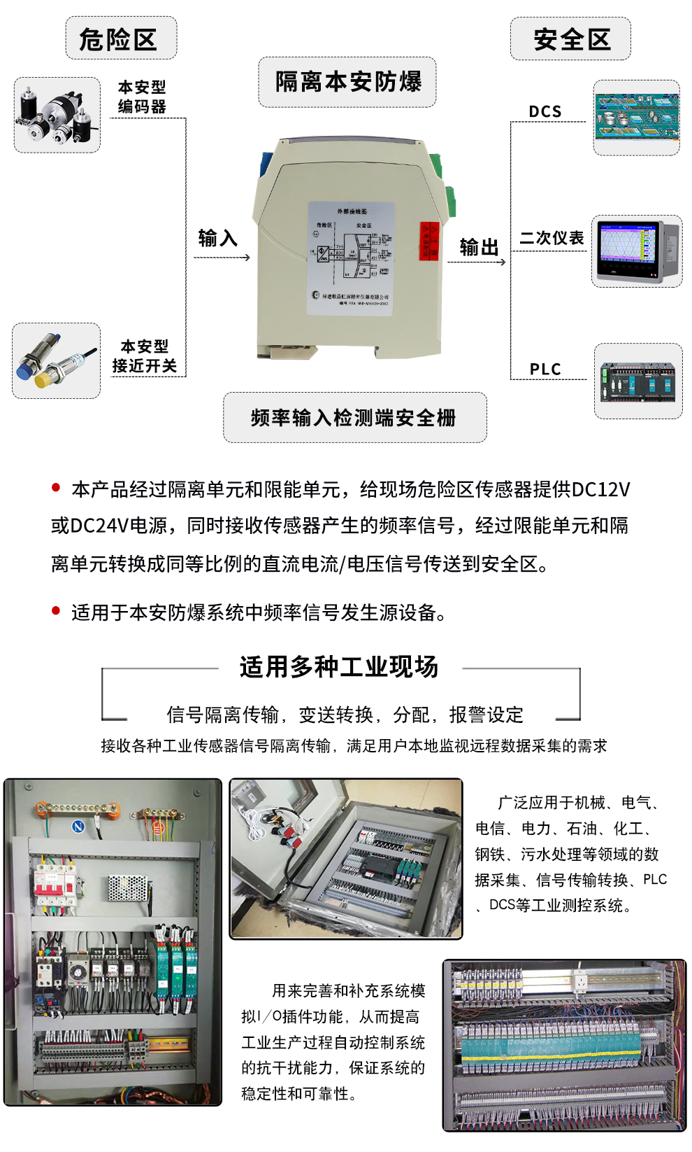 OHR-A34系列頻率輸入檢測端隔離柵可給現(xiàn)場危險區(qū)儀表提供12V或24V的隔離電源,危險區(qū)儀表產(chǎn)生的頻率信號通過安全柵隔離傳輸?shù)桨踩珎容敵觥]斎刖哂休^高的抗干擾性能。該產(chǎn)品需獨立供電,輸入/輸出/電源三隔離。本產(chǎn)品可用在頻率信號源等設備。