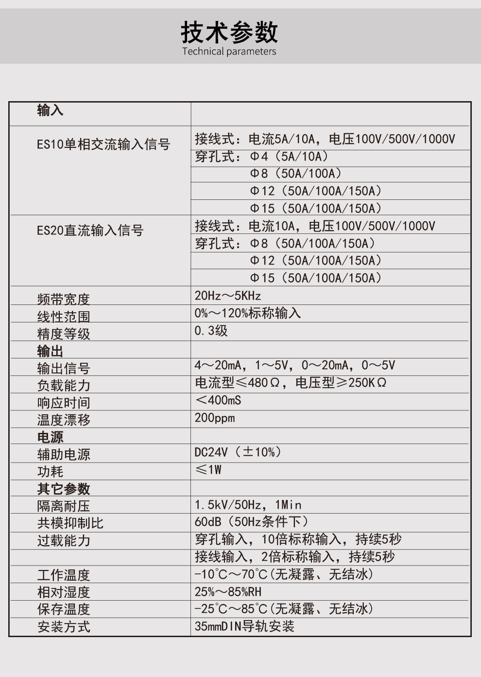 OHR-ES20系列直流電壓/電流變送器對(duì)電網(wǎng)和電路中的直流電壓或電流信號(hào)進(jìn)行實(shí)時(shí)測(cè)量,將其變換為直流電 壓電流信號(hào)輸出;具有高精度、高隔離、低漂移、低功耗、體積小、響應(yīng)快、抗干擾能力強(qiáng)等特點(diǎn)。本產(chǎn)品采用 卡標(biāo)準(zhǔn)DIN35mm導(dǎo)軌安裝,,適用于電力系統(tǒng)、郵電系統(tǒng)、鐵路監(jiān)測(cè)系統(tǒng)等的實(shí)時(shí)檢測(cè)。