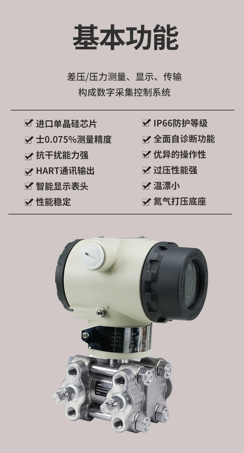 OHR-3051F1智能單晶硅微差壓變送器能準確的測量差壓,并把它轉換成4~20mADC的輸出信號。該變送器可通過三按鍵本地操作,或通用手操器、組態軟件、以及手機APP遠程操作,在不影響4~20mA DC的輸出信號的同時,進行顯示與組態。