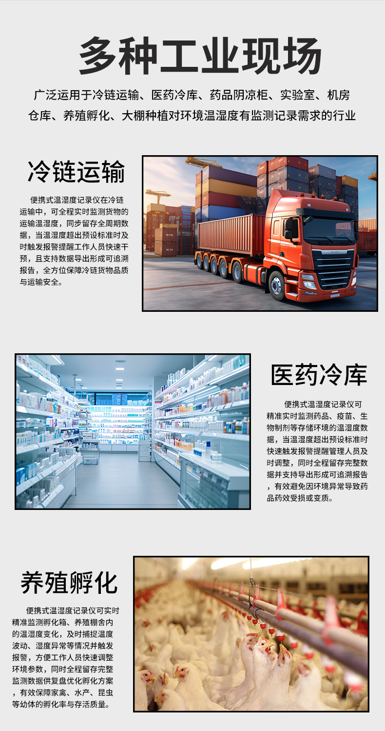 虹潤公司是專業生產環境監測儀表的國家專精特新“小巨人”企業。生產的便攜式溫濕度記錄儀,具有溫濕度記錄與轉存,手機充電電池,磁吸或壁掛安裝,故障報警提示,配上位機軟件等特點。產品獲得一種手持式低功耗溫濕度檢測儀、無紙記錄儀等2項國家發明專利,主持起草物聯網智能溫度儀表通用技術條件、冷鏈溫度記錄儀等2項國家標準,參與國際5G標準制定,取得便攜式溫濕度記錄儀等3項相關軟件著作權。產品廣泛應用于冷鏈運輸、醫藥冷庫、藥品陰涼柜、實驗室、機房倉庫、養殖孵化、大棚種植等諸多領域。