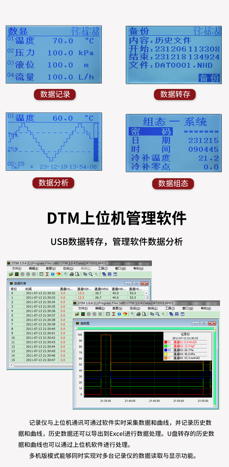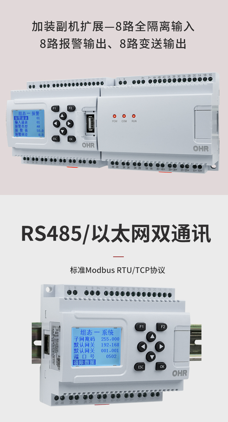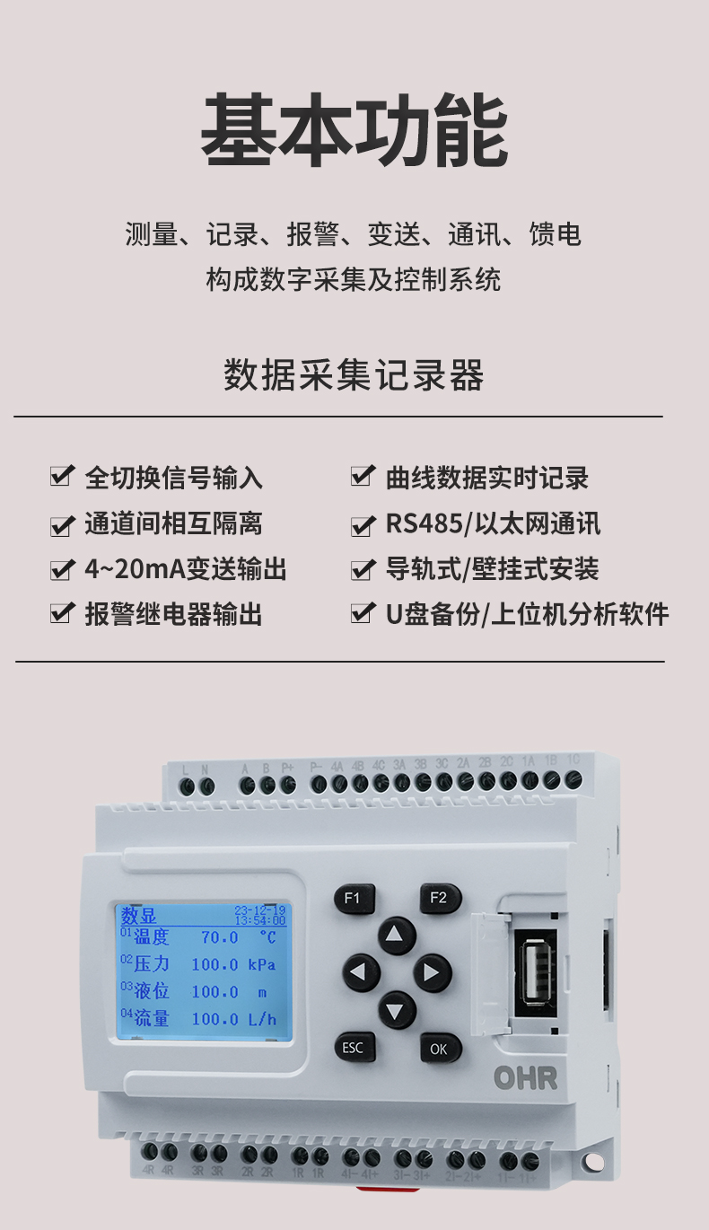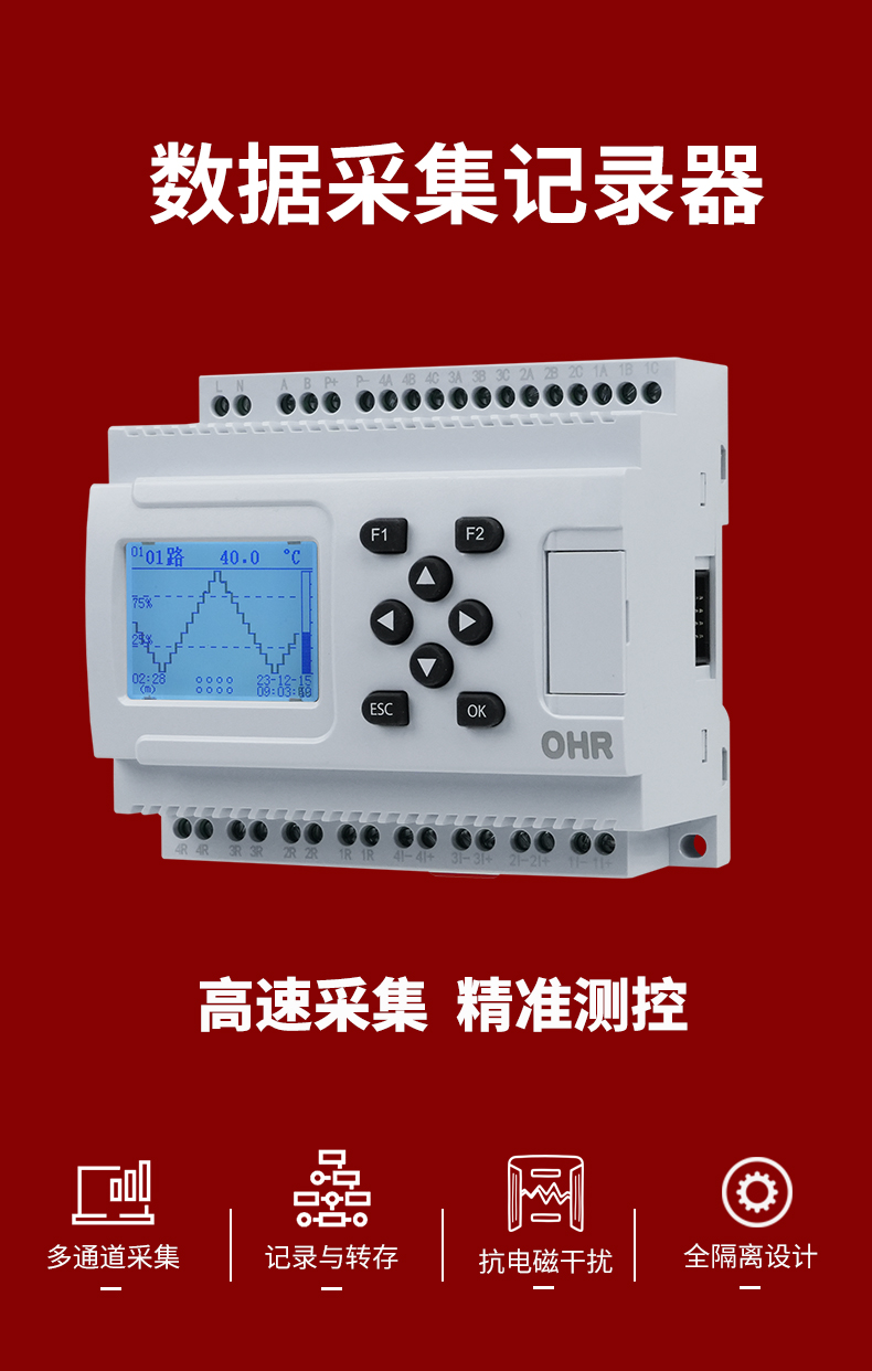 NHR-PR30系列數據采集器采用高速、高性能32位ARM微處理器,多重保護和隔離設計,抗干擾能力強, 可靠性高。顯示功能強大,具有實時曲線畫面、數顯畫面。儀表采用主副機結構設計,主機可提供4路萬能信號輸入,通道間相互隔離,RS485 通訊、以太網通訊等功能,連接副機可將I/O容量擴展至8路輸入。