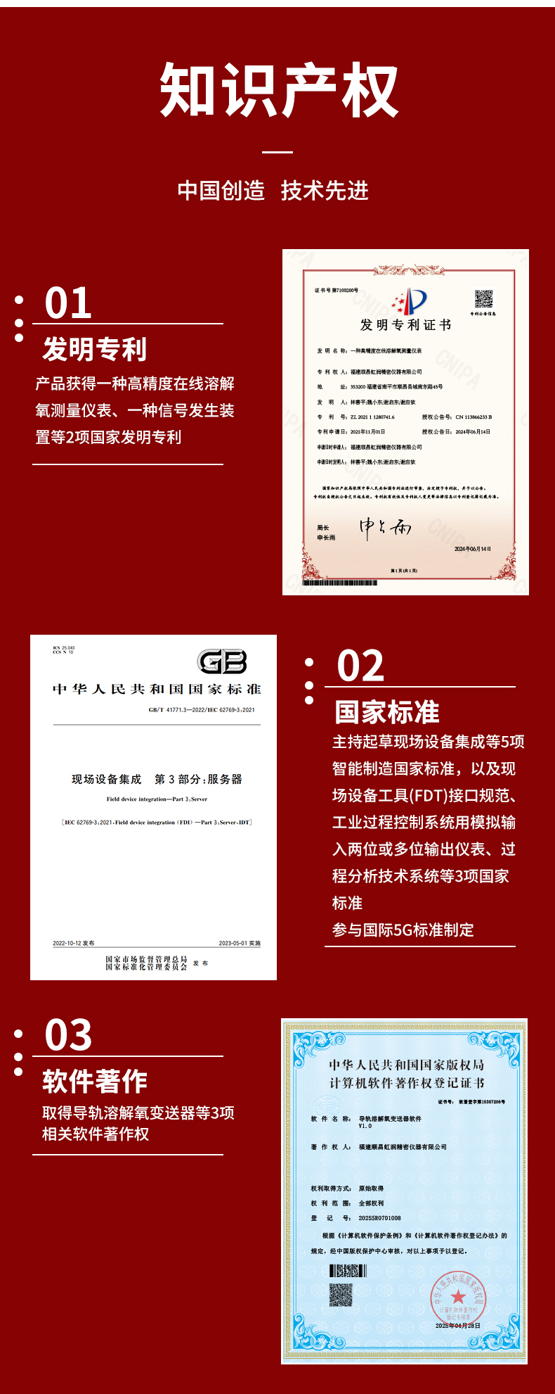 虹潤公司是專業生產水質分析儀的國家專精特新“小巨人”企業。生產的導軌式溶解氧變送器,具有測量穩定不跳字,液晶按鍵操控,變送輸出精準,寬范圍電源供電,RS485或HART通訊等特點。產品獲得一種高精度在線溶解氧測量儀表、智能化控制器、一種信號發生裝置等3項國家發明專利;主持起草現場設備工具(FDT)接口規范.,工業過程控制系統用模擬輸入兩位或多位輸出儀表、過程分析技術系統等3項國家國家標準;參與國際5G標準制定,取得導軌溶解氧變送器等3項相關軟件著作權。產品廣泛應用于實驗室、水處理、環境監測、制藥、食品、農業、工業流程控制等諸多領域