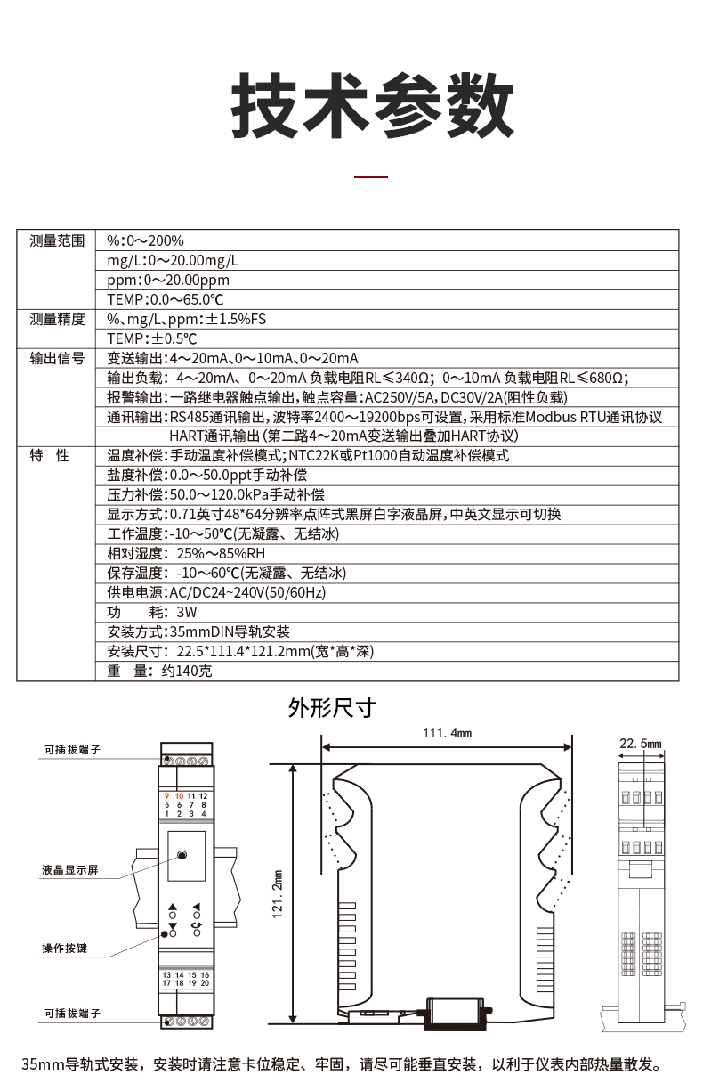 水質在線監測儀 導軌式水質參數變送器 水質參數記錄儀 水質參數在線監測儀