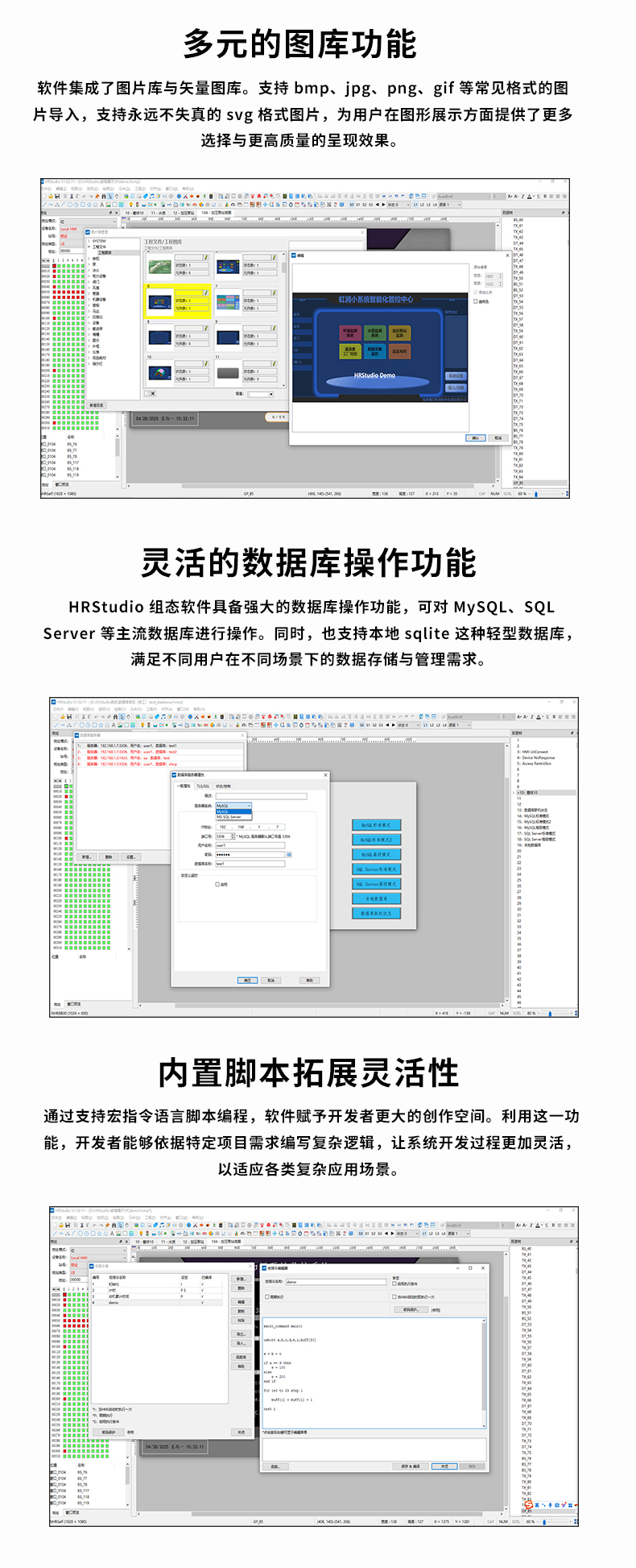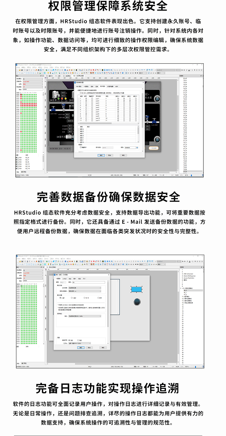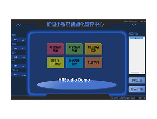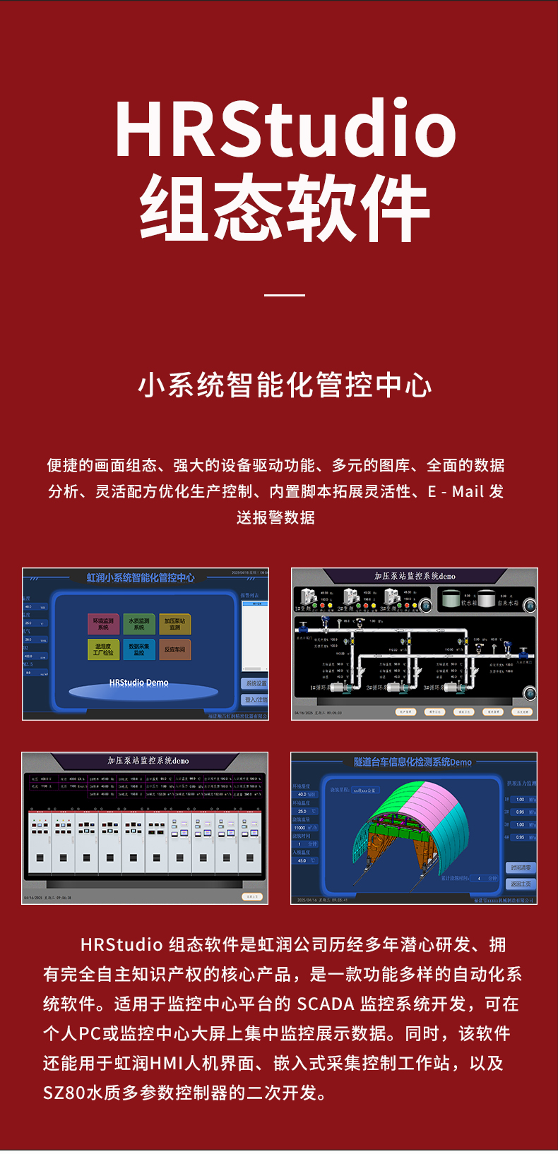 HRStudio 組態(tài)軟件是虹潤(rùn)公司歷經(jīng)多年潛心研發(fā)、擁有完全自主知識(shí)產(chǎn)權(quán)的核心產(chǎn)品,是一款功能多樣的自動(dòng)化系統(tǒng)軟件。適用于監(jiān)控中心平臺(tái)的 SCADA 監(jiān)控系統(tǒng)開(kāi)發(fā),可在個(gè)人 PC 或監(jiān)控中心大屏上集中監(jiān)控展示數(shù)據(jù)。同時(shí),該軟件還能用于虹潤(rùn) HMI人機(jī)界面、嵌入式采集控制工作站,以及SZ80 水質(zhì)多參數(shù)控制器的二次開(kāi)發(fā)