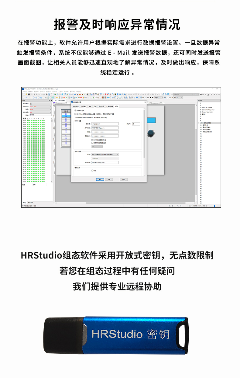 虹潤(rùn)?HRStudio?組態(tài)軟件采用開(kāi)放式密鑰,無(wú)點(diǎn)數(shù)限制;凡購(gòu)買(mǎi)虹潤(rùn)帶有 RS485/232、以太網(wǎng)通訊功能的儀表,單筆訂單滿(mǎn) 3800 元,即免費(fèi)贈(zèng)送HRStudio 組態(tài)軟件及對(duì)應(yīng)密鑰;若您在組態(tài)過(guò)程中有任何疑問(wèn),我們提供專(zhuān)業(yè)遠(yuǎn)程協(xié)助。